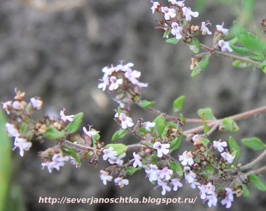 Уже два года растет на моей пряной грядке довольно скромное, но очень привлекательное для меня растение - тимьян ( чабрец). Мне нравится его аромат - пряный и крепкий, мелкие цветочки на верхушках побегов, и способность занимать предоставленное пространство, образуя компактные кустики.
