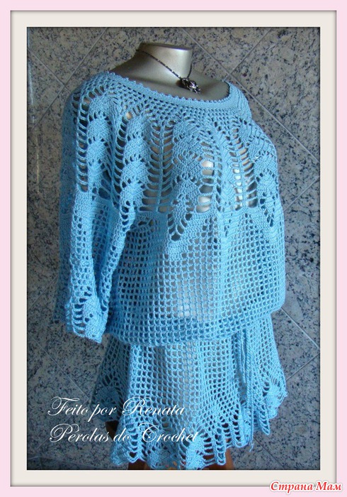 Голубая ажурная блуза крючком