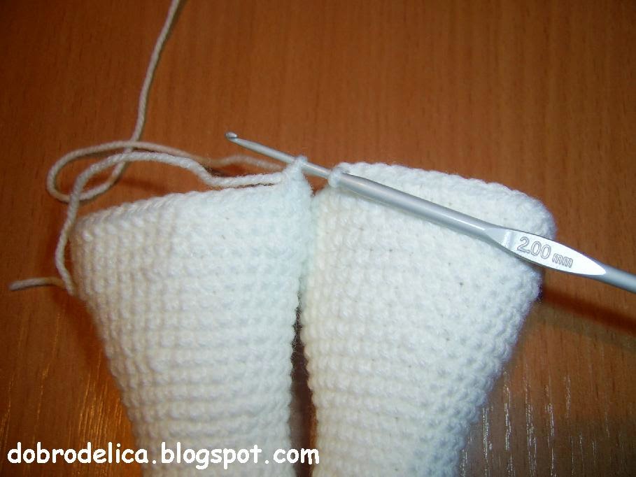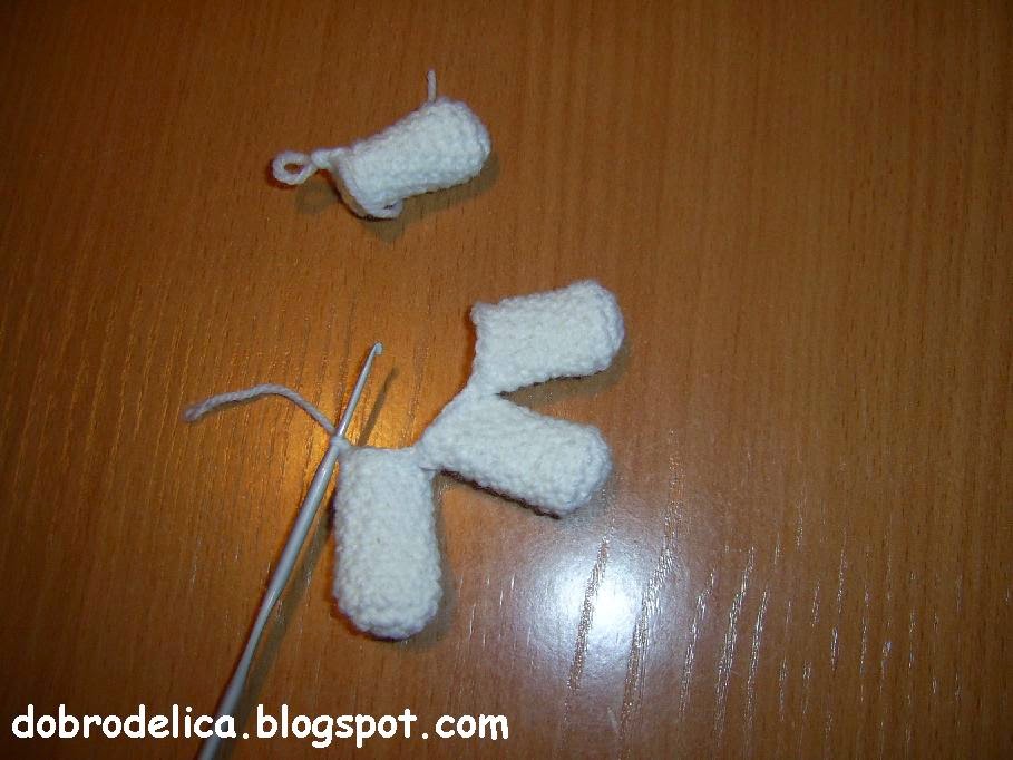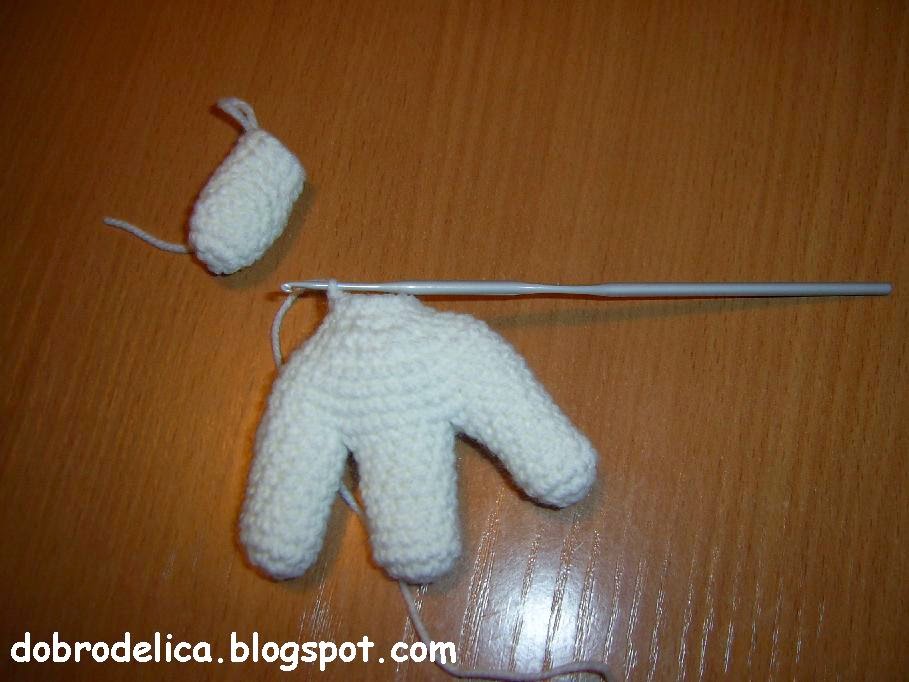 6сбн, далее присоединяем 3 палец-вяжем 6сбн, потом 2 палец-провязываем 12 сбн,