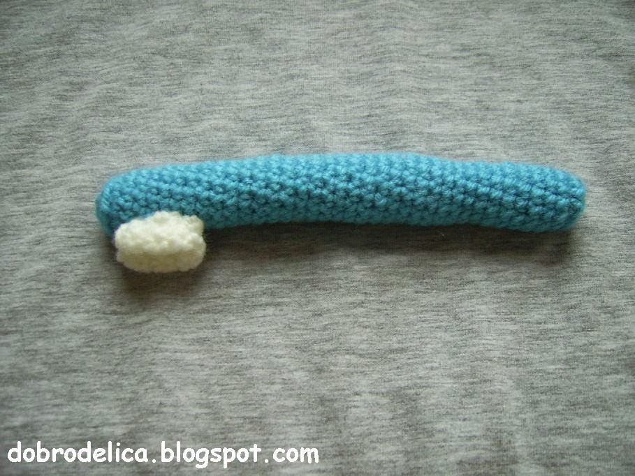 4) 12сбн вяжем столько рядов, чтобы получилось 13см. Закончить ряд убавками, нить спрятать внутрь палочки.
