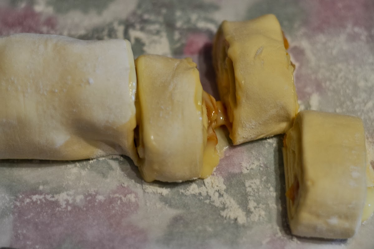 Слегка приплюснуть их рукой. У меня остался крем и я его еще чайной ложечкой добавила в булочки, чтобы его было побольше.