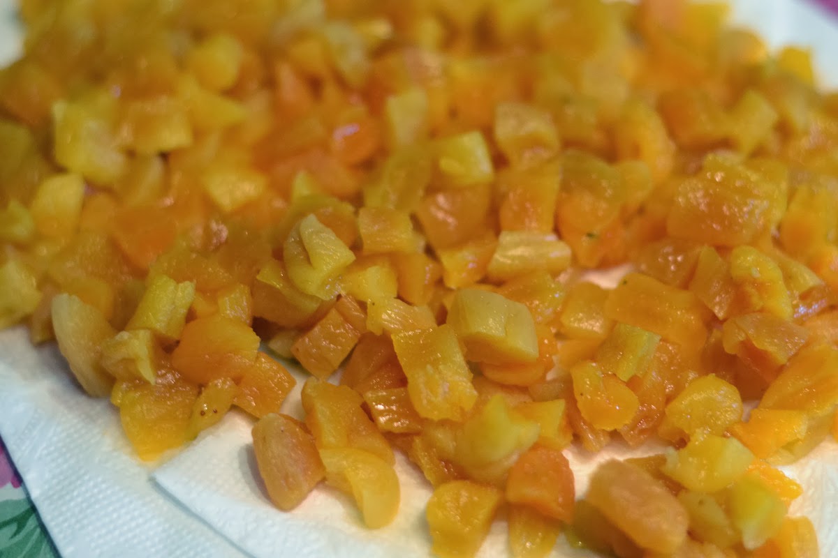 Курагу промыть, порезать на мелкие кусочки, залить ликером или просто вместо ликера подлить к кураге немного кипяченой воды с ванилью для вкуса и аромата. Дать настояться. У меня ночь в холодильнике.