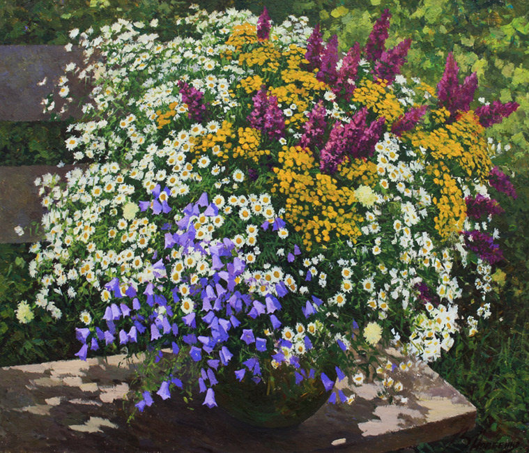 Любимой темой работ Виктора Довбенко является живой окружающий мир: как он сам говорит, «стремясь к душевному контакту с природой, делаю ее зеркалом своих чувств и настроений». Основная часть картин художника – пейзажи, но не менее захватывают зрителя яркие натюрморты, живые композиции садовых и полевых цветов. Душистые букеты дельфиниума, ромашек, васильков, роз, астр, георгинов словно оживают, окутывая летним ароматом пространство картины. Все пейзажи автора насыщены цветами, яркими природными оттенками.Живым видением мира Виктор Довбенко щедро делится с публикой: «Я радуюсь многообразию форм и красок окружающего мира с кистью в руках и ищу способ передать их естественную гармоничность». Художественной искренностью и живой манерой письма картины Довбенко завоевали любовь зрителей, неоднократно становясь участником тематических, городских и областных выставок.