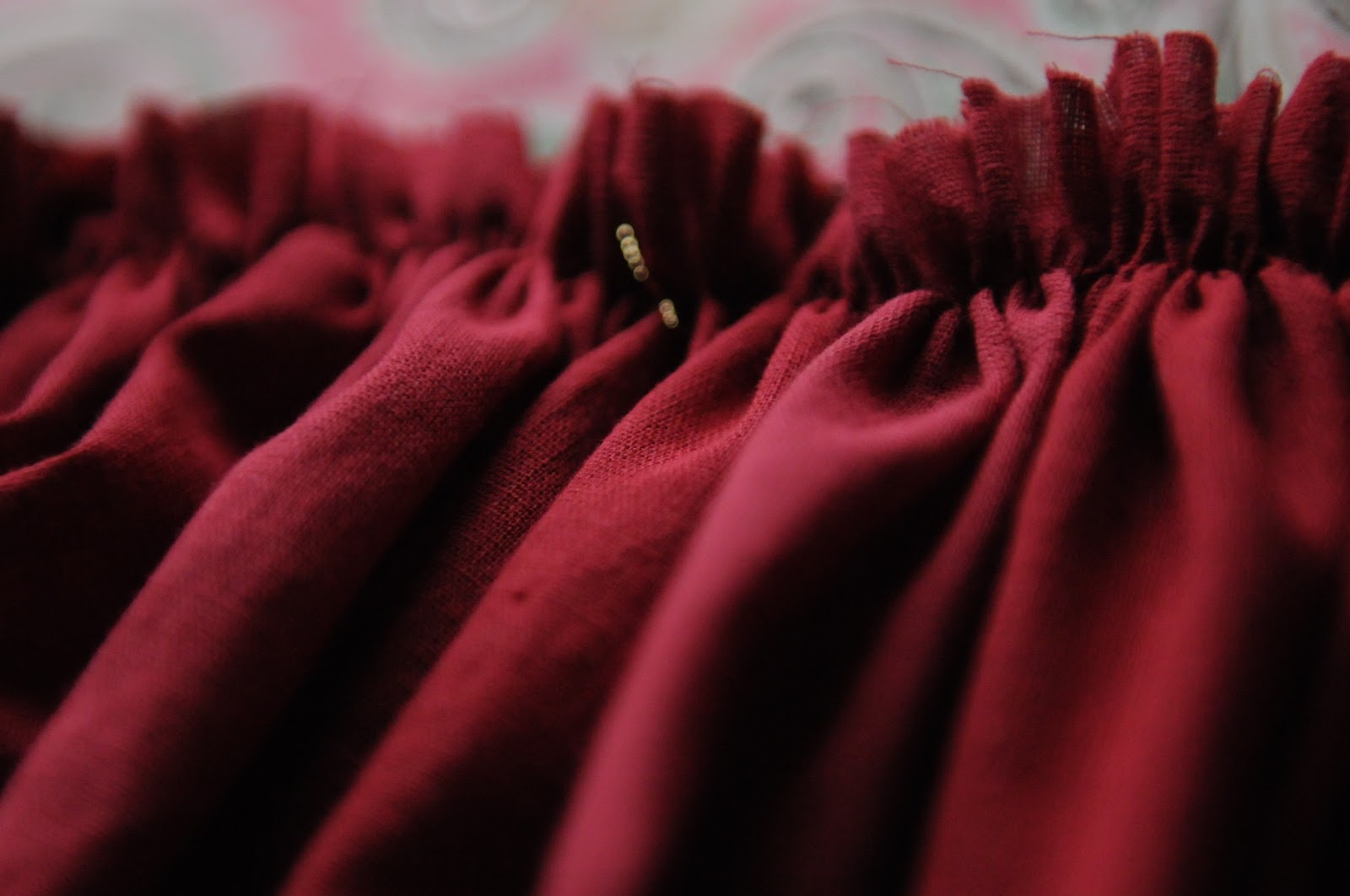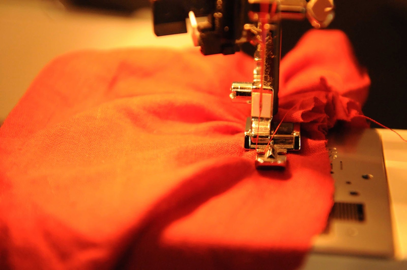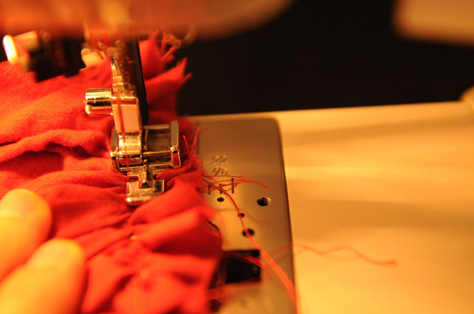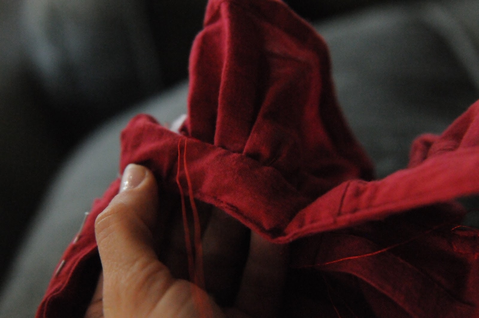 шить сбора стежком вдоль криволинейной кромки рукаве