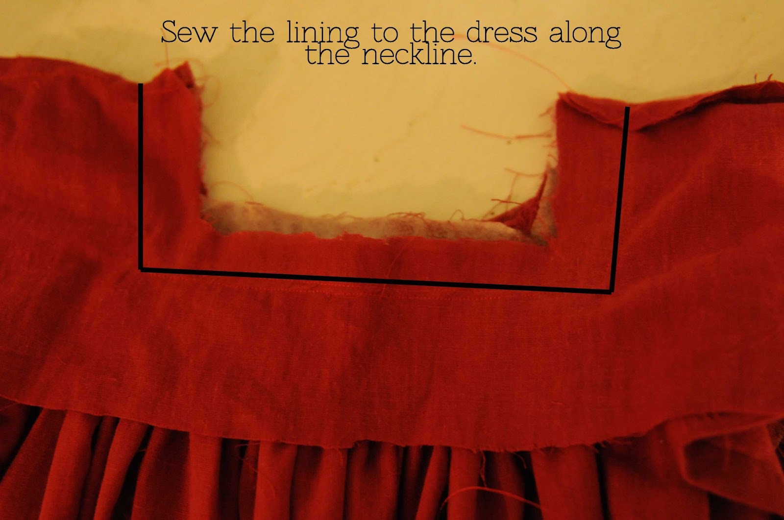 Теперь пришло время шить подкладку к платью вдоль декольте.