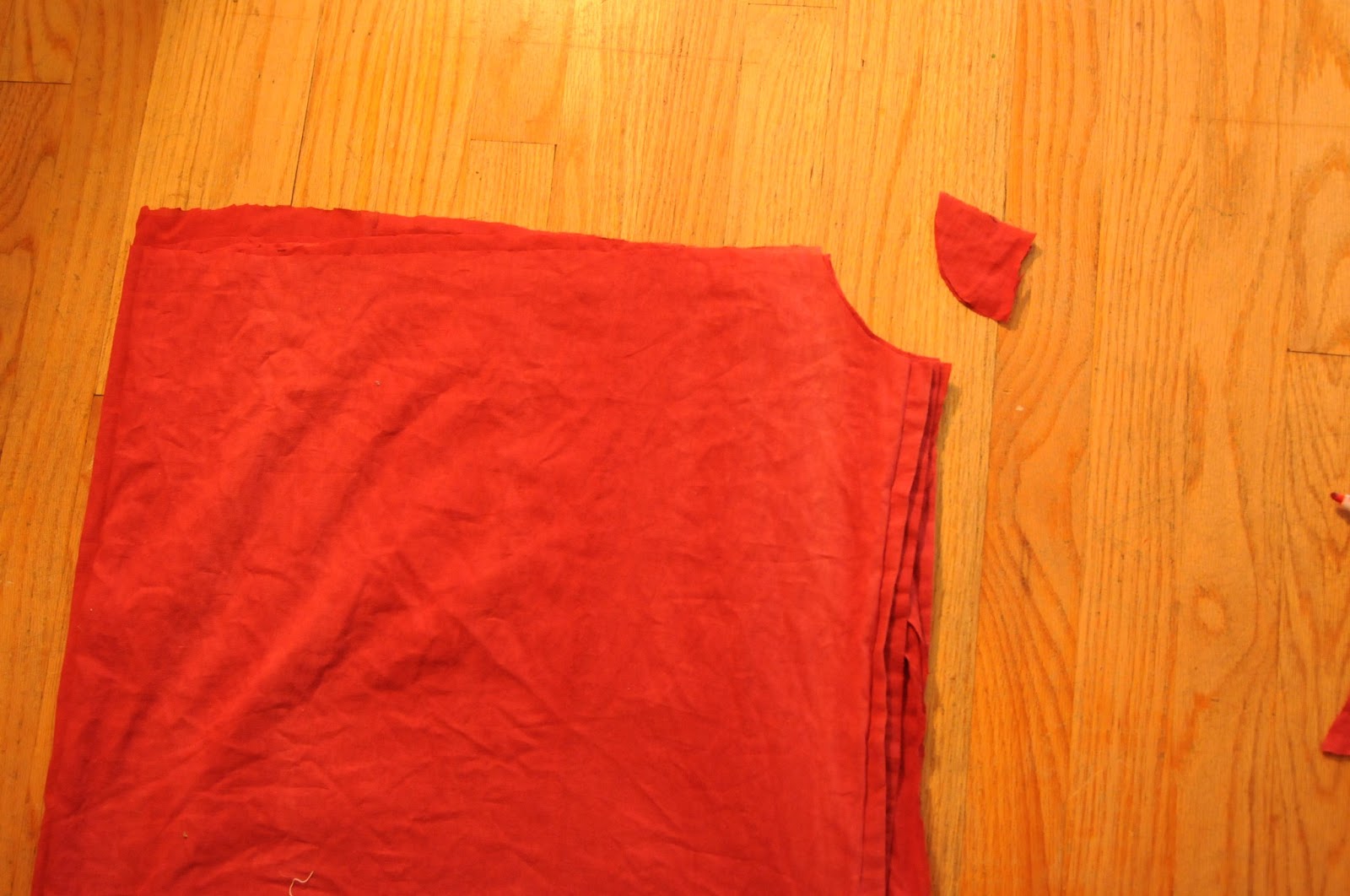 Перед тем, как начать шить, то вам нужно, чтобы вырезать отверстия руки от юбки кусок.