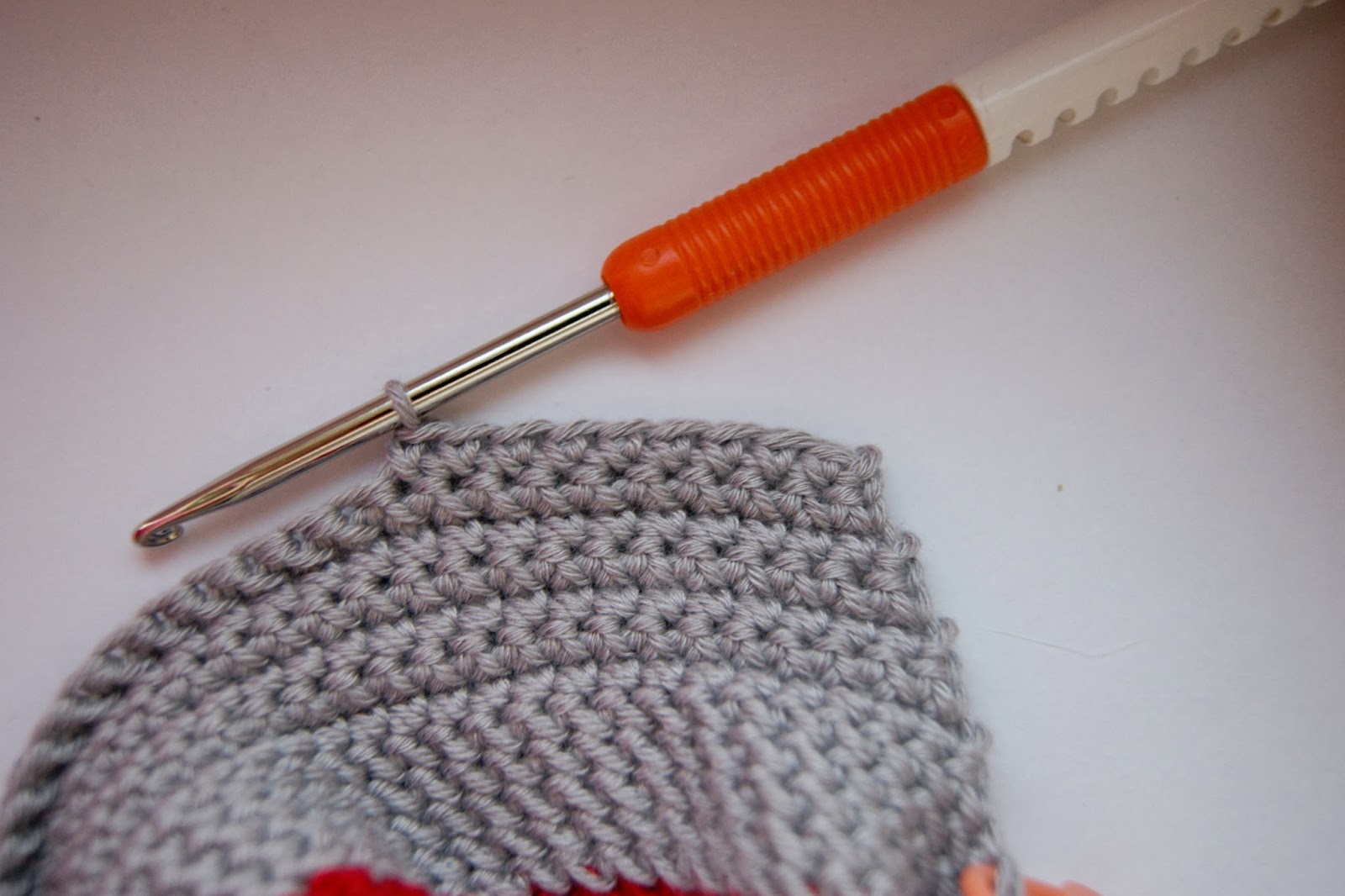 Меняем нить на СЕРЫЙ цвет и продолжаем вязать по кругу уже без прибавок...