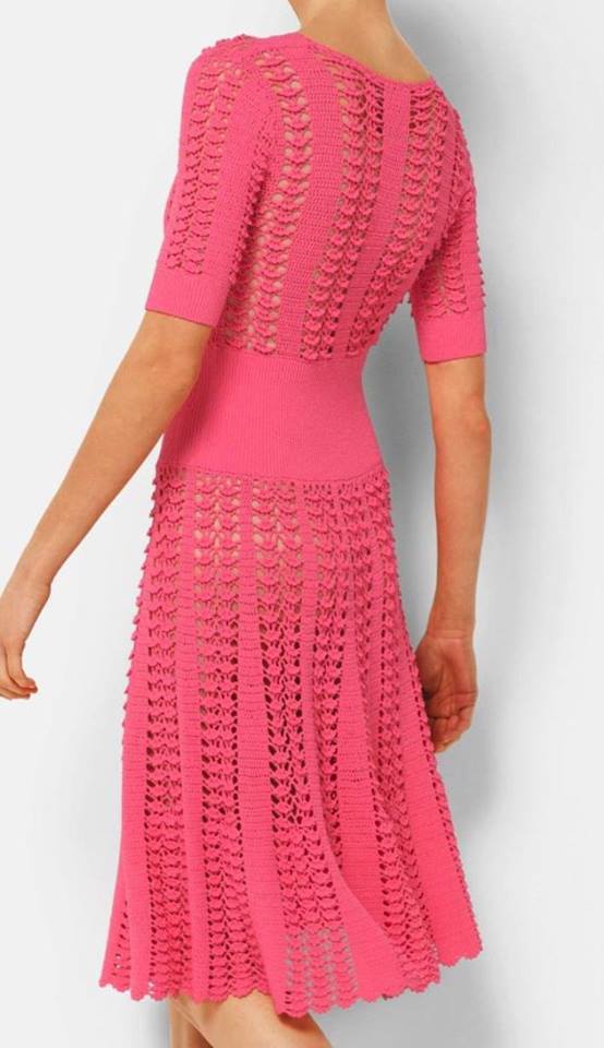 Юбка расширялась за счет добавки в ажурном узоре и в полосках столбиков добавляла до 14 столбиков.