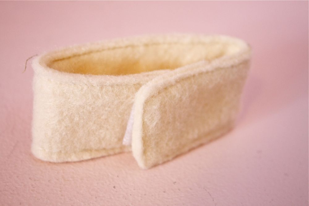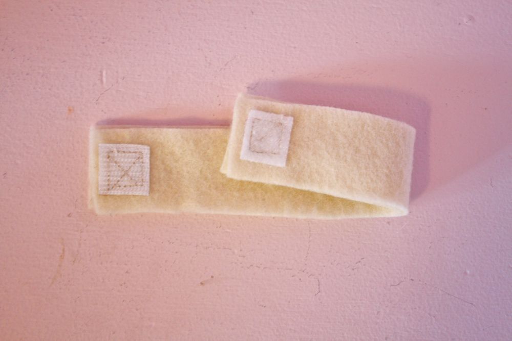 Сделано из войлока с липучкой, лепестков тканевых цветов и жемчужных бусинок.