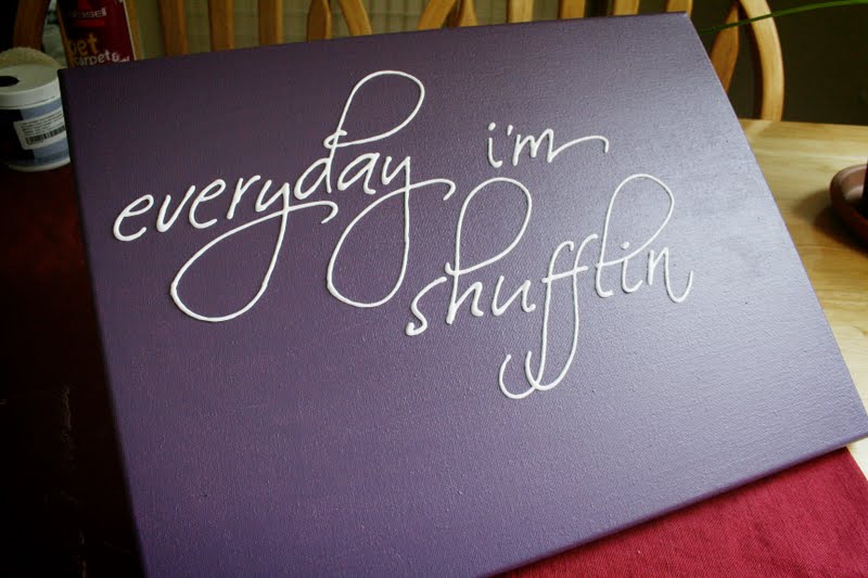 Дальше самое интересное! Для основы автор использует холст. А вот как она переносит буквы, я так толком и не поняла. Можно просто натянуть на холст пленку с надписью, но на фотографиях буквы прямо на холсте. Значит их переносили по одной буковке и приклеивали на холст?