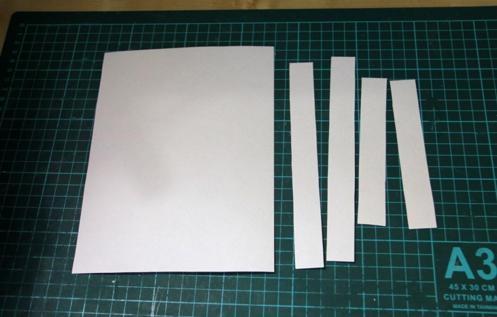 Картон пока откладываем и беремся за акварельную бумагу. Из неё вырезаем основу 15х20 см и 4 полоски для рамки: все шириной 2 см, а длинной 2 по 18 см и 2 по 13 см.