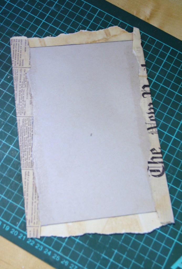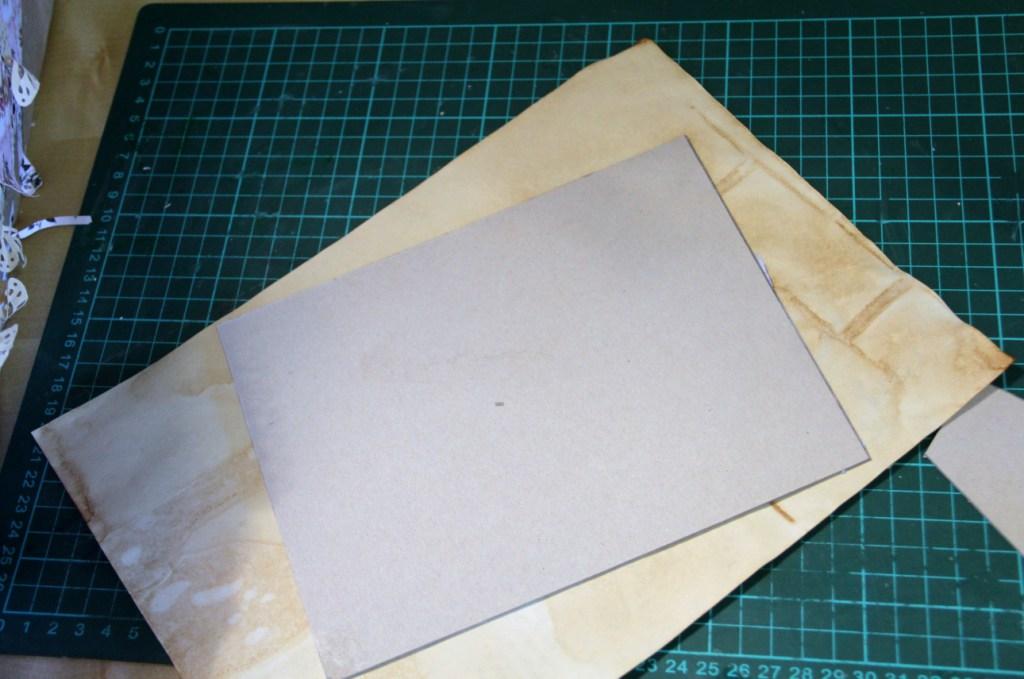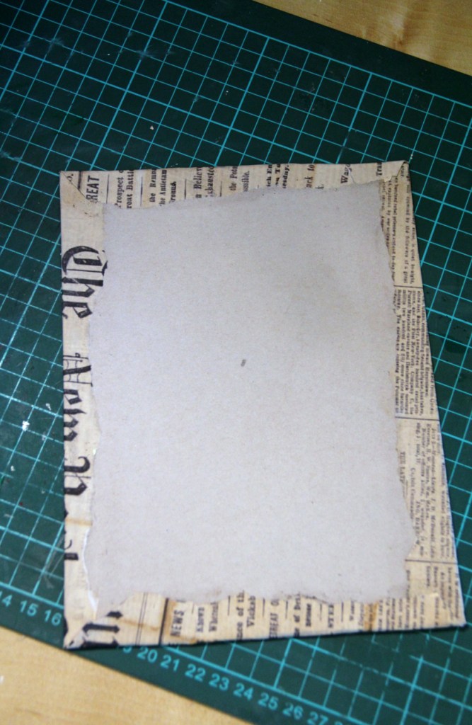Приступаем к задней части рамки. Берем листы, окрашенные кофе и распечатываем на них старую газету.