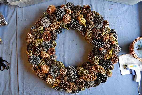 воронина_таня Оригинальное сообщениеПраздничный венок из шишек. Идеи и четыре мастер-класса..