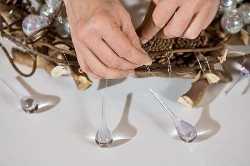 Мастер-класс 4: Венок из шишек и веток деревья декорированы новогодним декором и покрытый искусственным снегом..