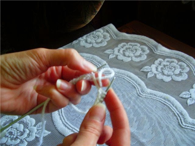 Перекрещенный накид - согнуть нитку дугой и поворачиваем по часовой стрелке. Получившуюся петлю надеваем на спицу.