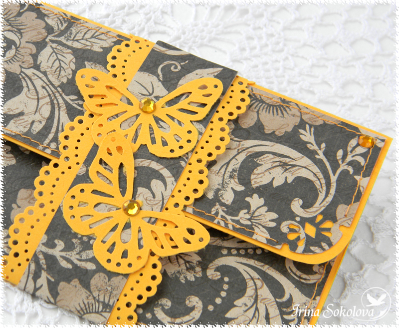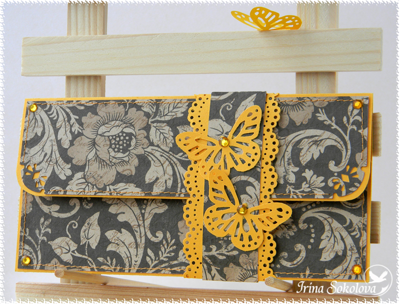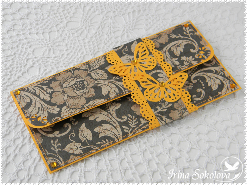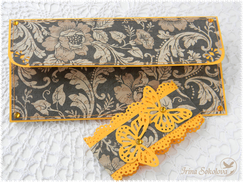 Для изготовления конверта для денег я использовала картон, крафтбумагу от Graphic 45, дыроколы: от МС "Бабочка", "Кружево (Мечта)", угловой дырокол "Алмаз", полукруг,