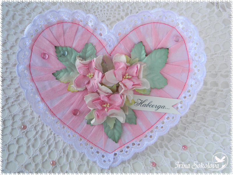 Использовала кружево, акварельную бумагу для основы, гофрированную бумагу,