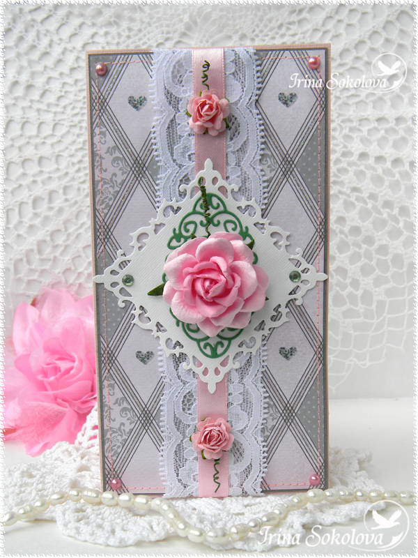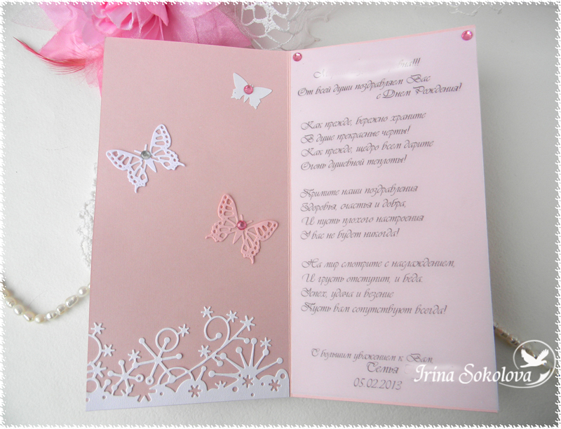 Хочу показать вам сегодня открытку на день рождения. Она получилась такой нежной. Мне самой нравится! )))