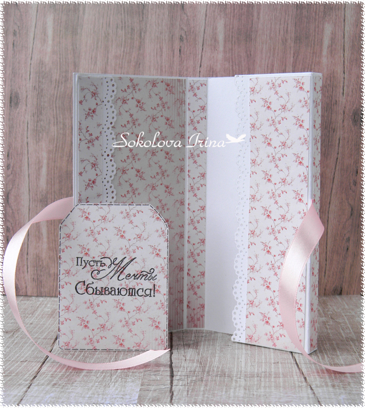 Здесь кармашек для тега с пожеланиями сделала сбоку, а не как на всех своих предыдущих