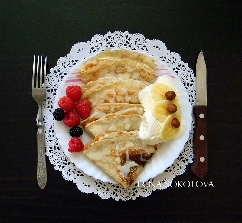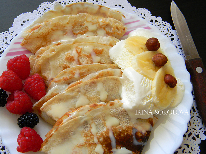 Пока дочка гостит у бабушек, я тут занимаюсь приготовлением разных вкусняшек, от которых мы отказались, т.к. дочке нельзя молочные продукты. Наделала блинов на молоке да со сгущенкой и рядышком еще мороженого положила. Ух, как же все это вкусно!)))