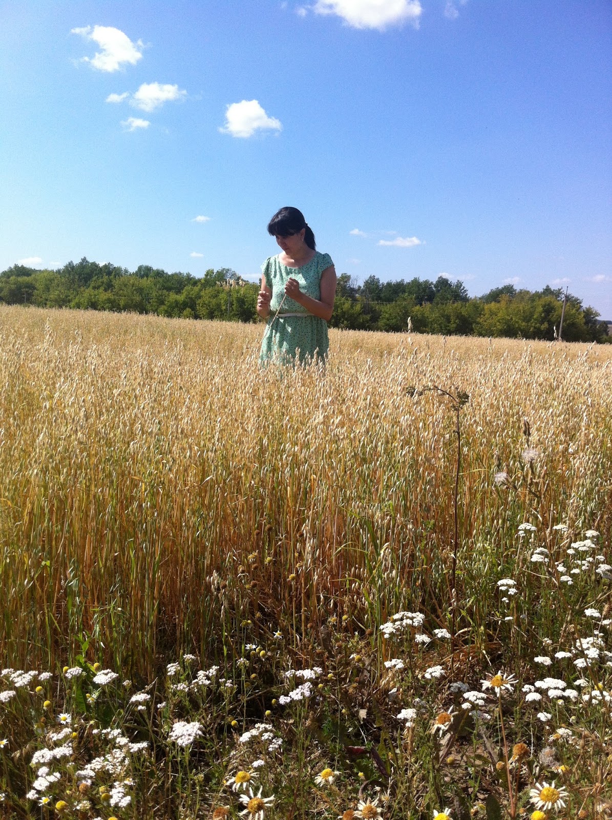 Мы гуляли рядом с полем. Я решила набрать немного колосков для фотосессий работ )) Она меня успела пару раз запечатлеть))