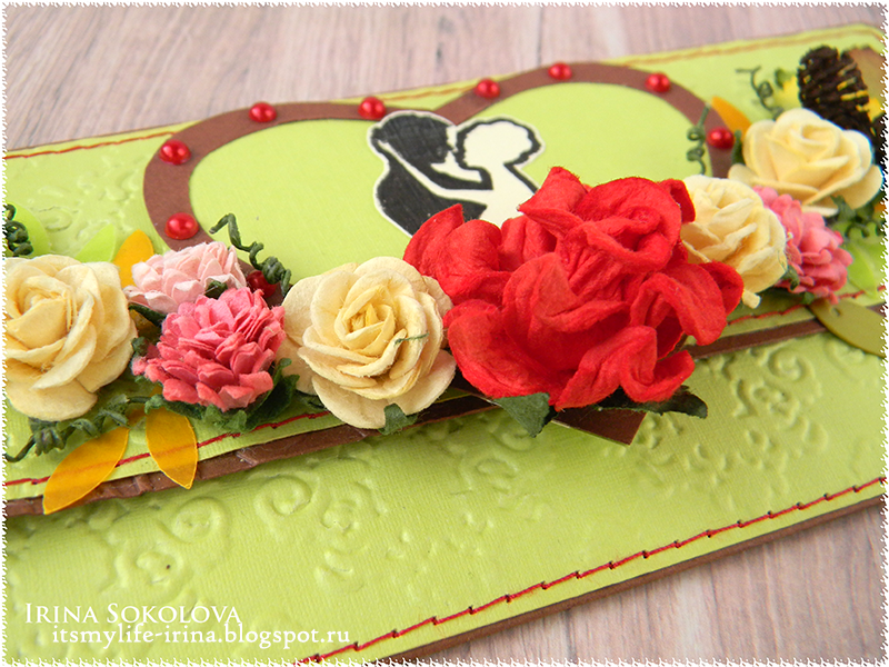 Тиснение немного ближе. Толщина картона 280 г/м2 Так что, если сомневаетесь сможете ли вы сделать тиснение при помощи скалки на плотном картоне - не сомневайтесь! Здесь можно увидеть, что все возможно)) Я смочила слегка другую сторону до тиснения чтобы картон стал более податливым.