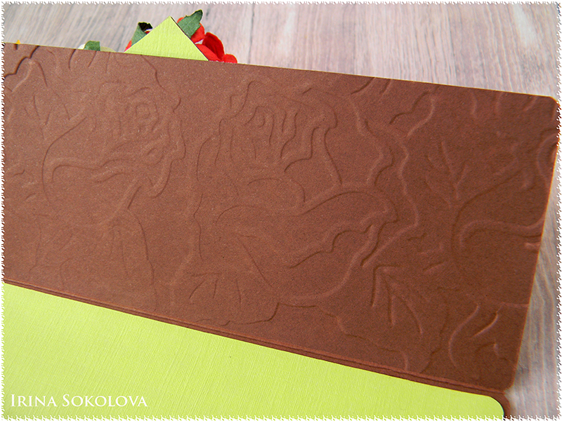 Внутри на клапане сделано тиснение в виде роз. Делала при помощи скалки (