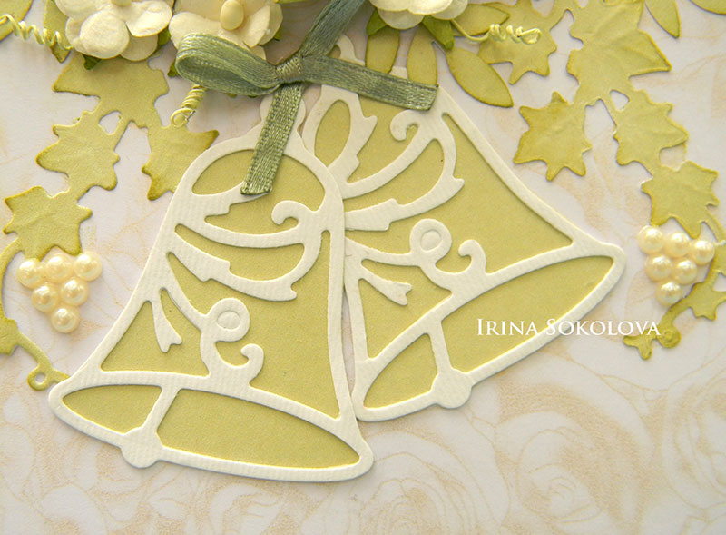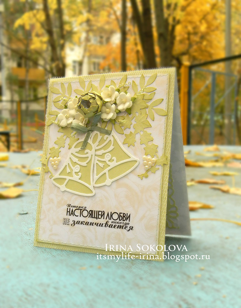 открытку на свадьбу+венчание в белом и нежно-зеленом цвете. Пожелания заказчицы было помимо палитры, наличие сердца, фото молодых и стиха в рамочке.