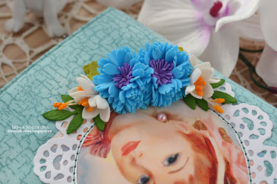 Внутри блокнота выкрашенные голубым листы. Не стала ничего штамповать на листах, т.к. они итак хороши))