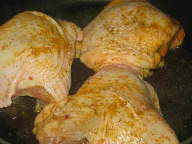 Затем слегка обжарить бёдрышки до золотистого цвета.
