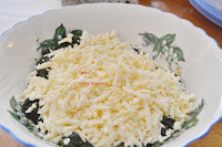 Сыр натрите на терке и смешайте со шпинатом. Добавьте соли.