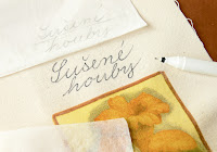 4. Текстильным маркером сделаем надпись. Хорошо смотрится текст, написанный от руки . Предварительно попробуем карандашом на бумаге, чтобы правильно оценить, сколько потребуется места на надпись