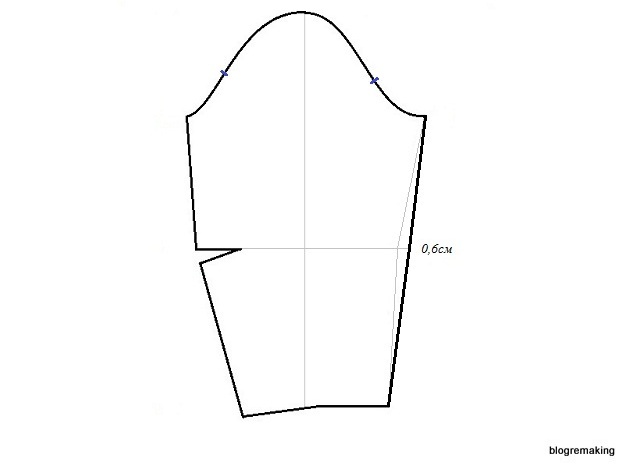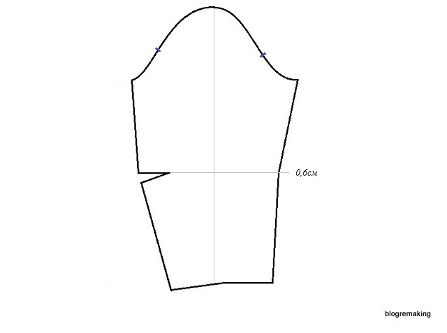 Уменьшим раствор локтевой вытачки на 0,6см и на эту же величину поднимем нижний срез рукава.