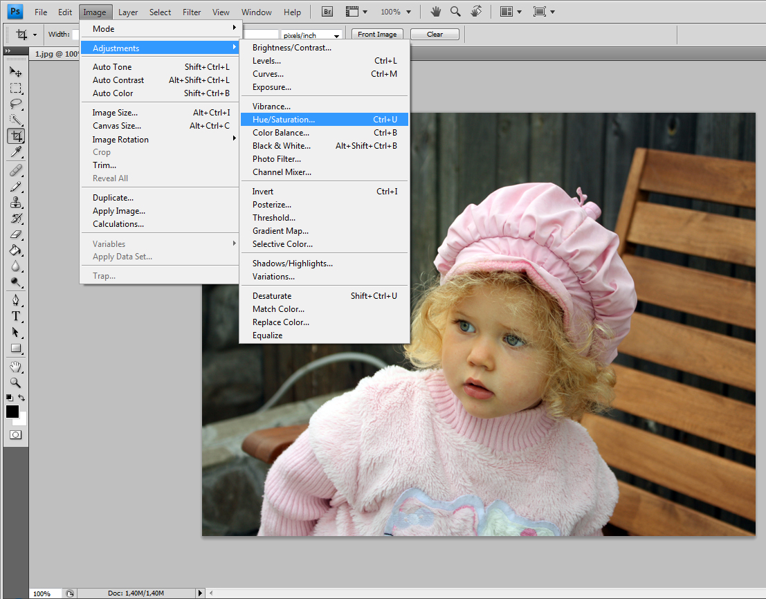 Image - Mode - Adjustments - Hue\Saturation (или Ctrl+U)
