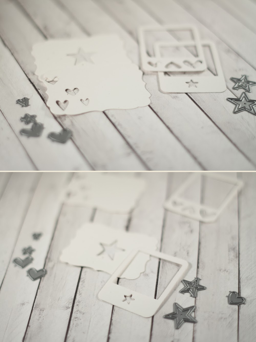 Среди всех своих ножей я выбрала те, которые требуют прокачки - в основном это такие ножи, у которых есть большие сплошные пространства бумаги. Также я взяла два набора мини-ножей звездочки и сердечки, а также кроподайл Big Bite, который делает дырочки двух диаметров.