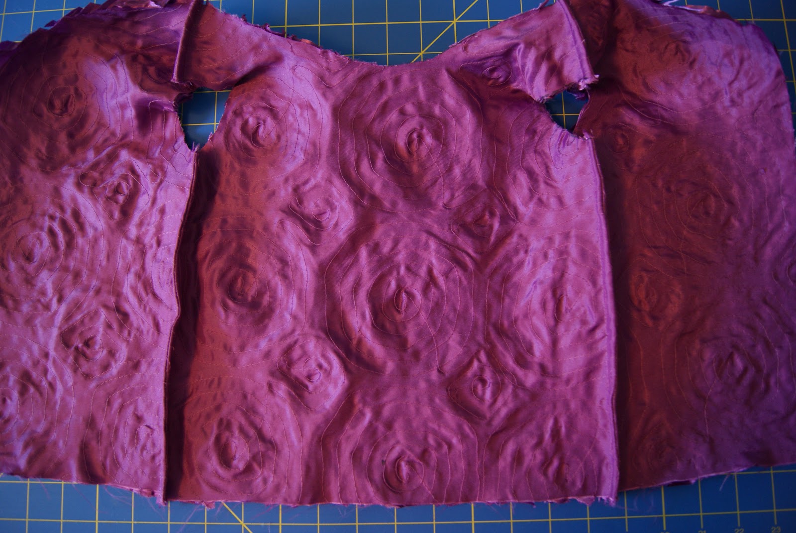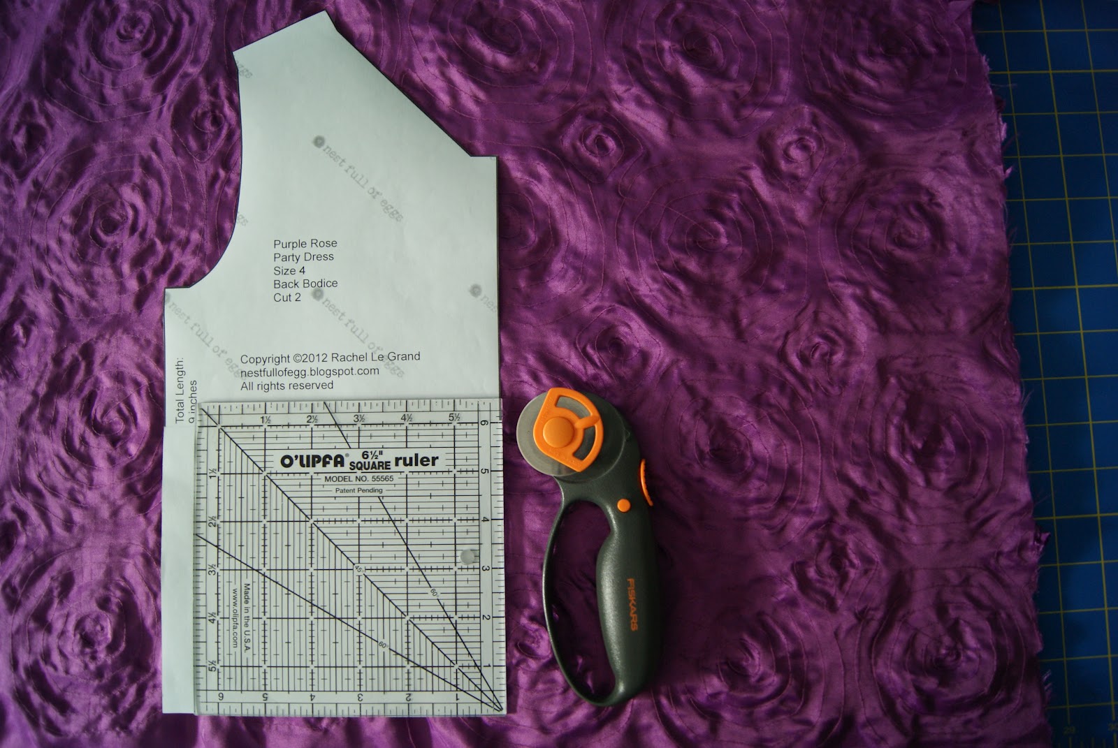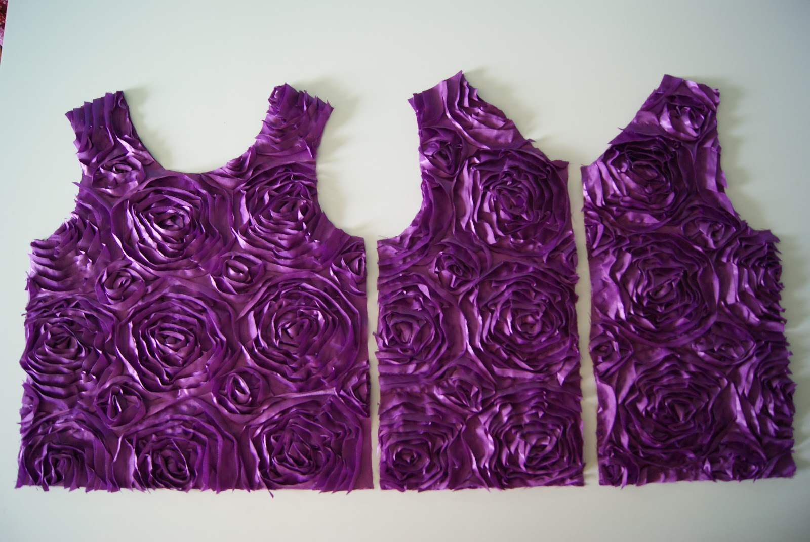:: Распечатайте выкройки. Убедитесь, что добавили 6 дюймов в нижней части корсажах части, так что боковые швы измерения в общей сложности 9 дюймов. Ряды ткани розетками довольно толстый, поэтому трудно вырезать в сложенном состоянии, поэтому я рекомендую печатью 2 экземпляра фронт лифом и лентой вместе. Я также рекомендую использовать линейку и фреза для вырезания части модели, которые имеют прямые линии.