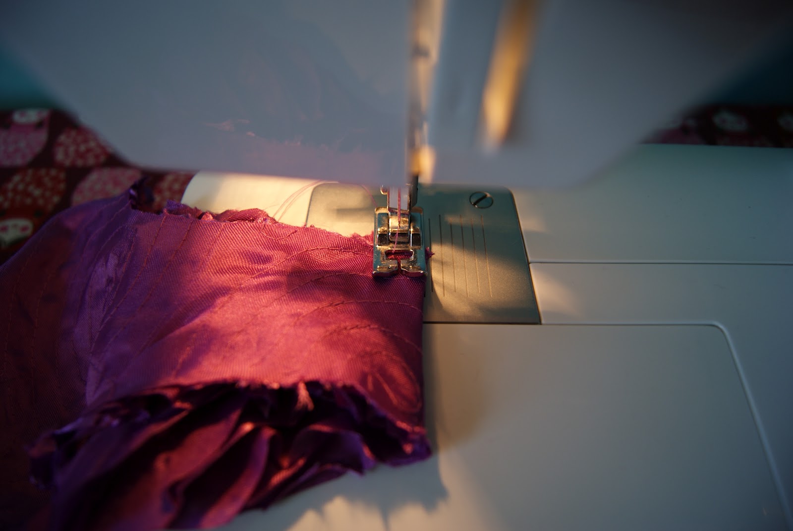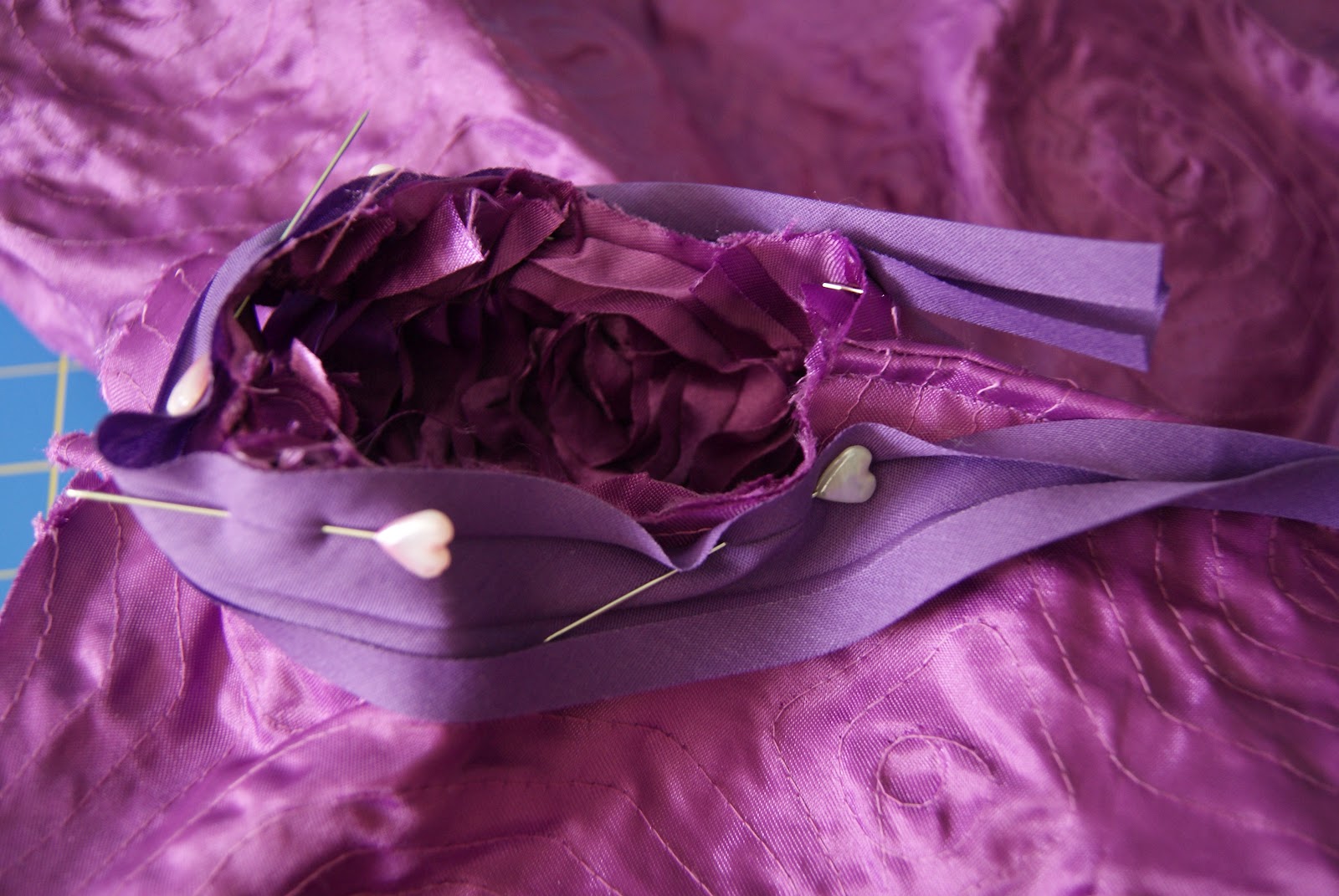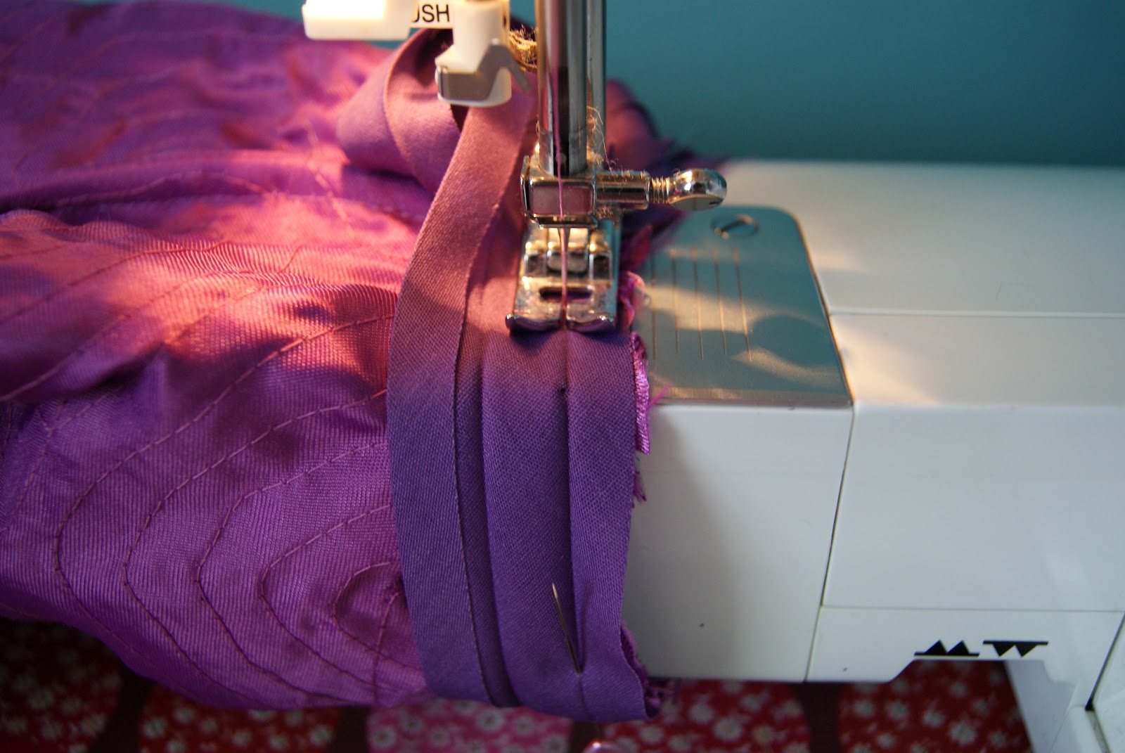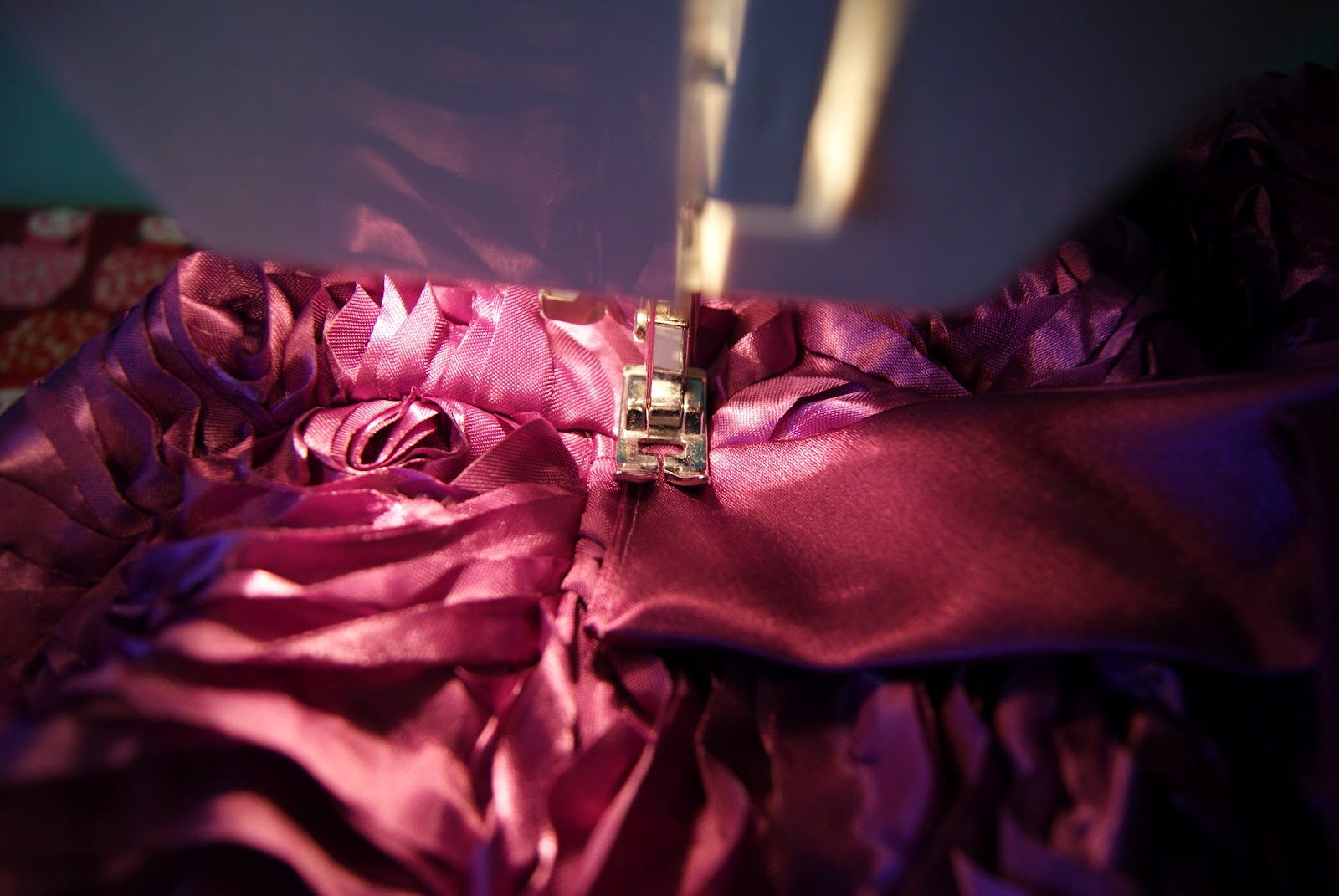 :: Конца, где вы topstitched, место, которое только за одну из боковых швов лифом и с зигзагообразными стежками пришить его на платье, так что, когда, когда створка выдвигается зигзаг будут покрыты за счет створки. Повторите эти действия для второй створки.