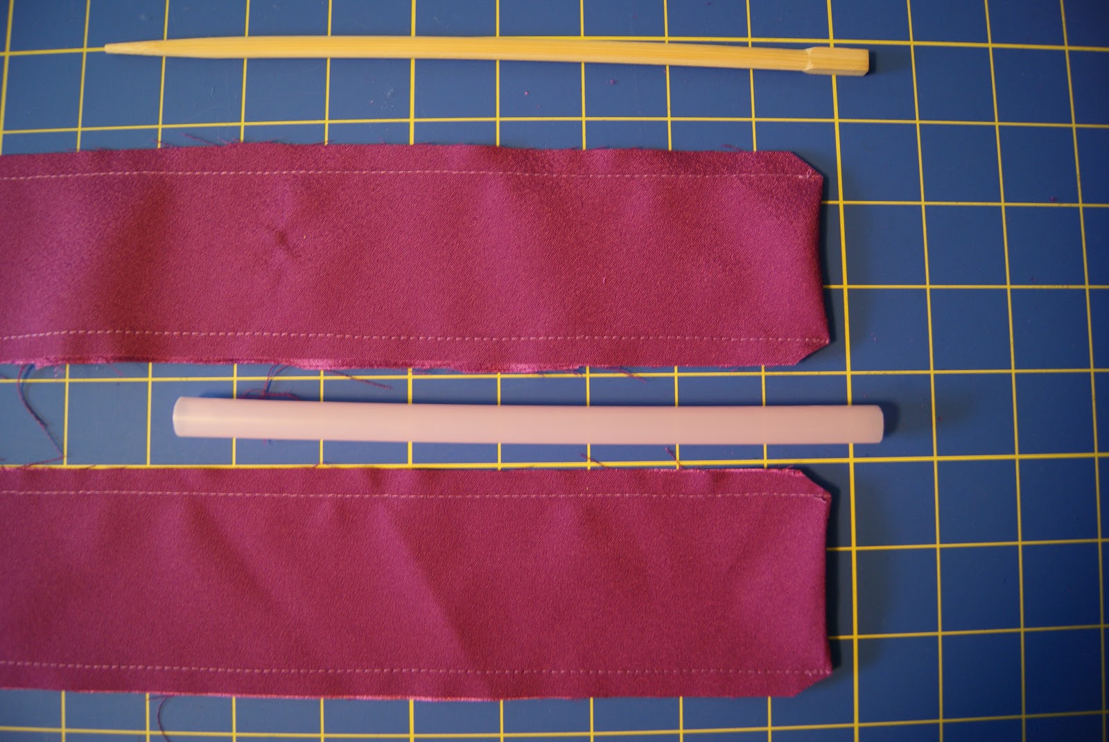 Клип :: углах и для токарных инструментов (я использую коктейль соломы и палочки для еды), Поверните правую сторону, нажмите с железом. Заправить необработанные края, нажмите с железом, и настрочить.
