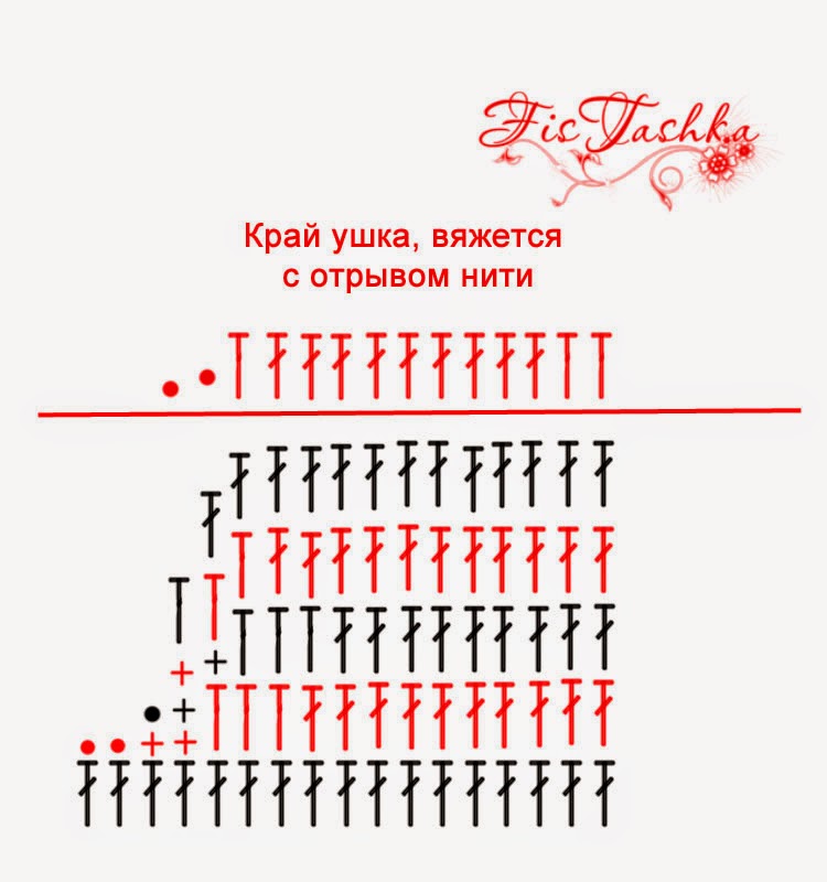 Примечание: Каждое ушко состоит из двух сторон. Задняя сторона полностью из основного цвета, передняя из белого и основного.