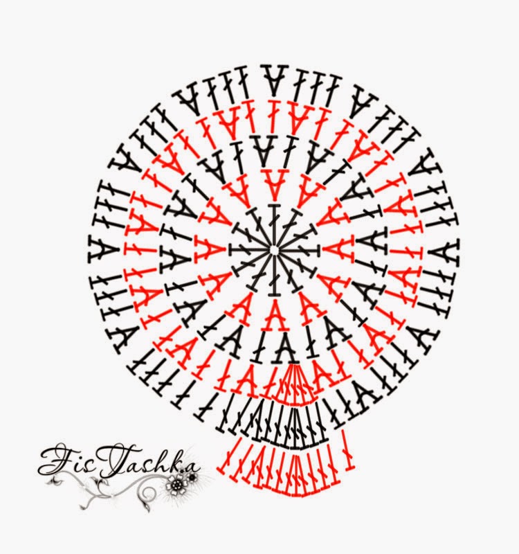 А теперь пояснения. Значит так, начинаем вязать в кольцо 12 ССН. Затем в каждом ряду добавляем по 12 ССН.