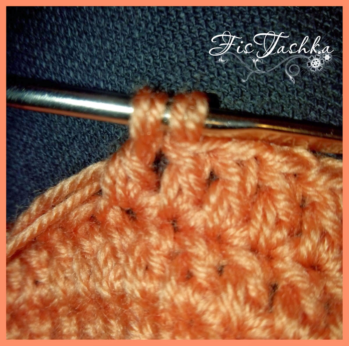 не довязываем последний столбик с накидом оранжевым цветом