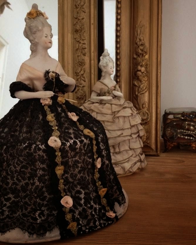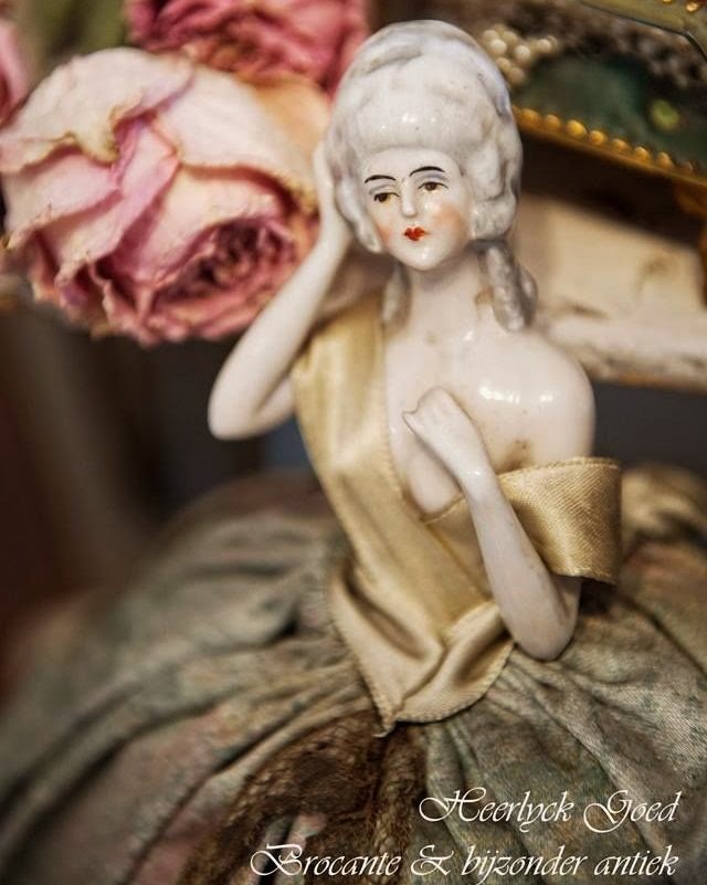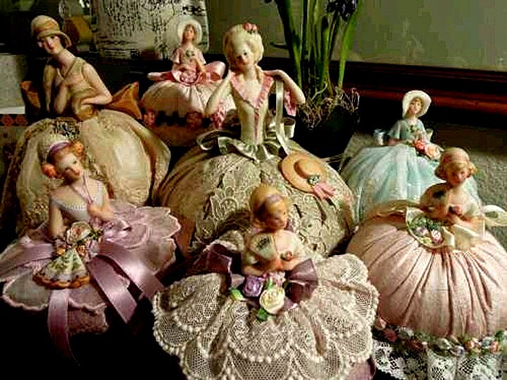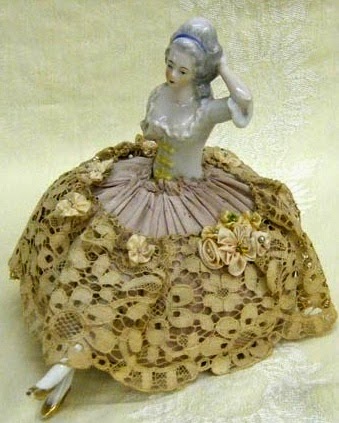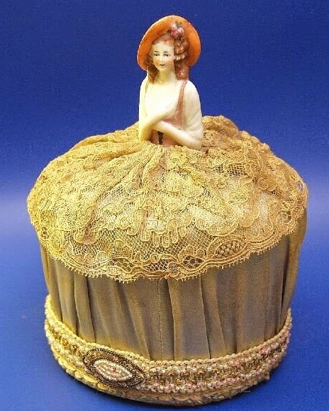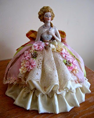 [240x320]"Обаяние этих очаровательных half-dools (полу-кукол) витает в воздухе уже более двух столетий. Первое письменное упоминание о них датируется 1747-м годом. Во времена королевы Виктории (1837-1901) этими куколками украшали шкатулки, игольницы, кувшины. Им шили прелестные юбочки-мешки для тайного хранения дамских штучек в будуарах, а потому куколки стали признаком хорошего вкуса изобретательных знатных дам. Но наиболее часто этими полу-куклами украшали именно игольницы, за что они и получили свое самое популярное название - "куколки-игольницы".Конец 19-го века и начало 20-го характеризуется огромной популярностью half-dools на рынке Европы и Америки. Их преимущественно изготавливали из фарфора, но также из покрытого воском папье-маше или дерева раскрашенных вручную. Изготовление самых искусно выполненных кукол берёт начало в Германии, где в Саксонии, Тюрингии и Баварии этим занимались фирмы Dressel & Kister , FW Goebel, Ernst, Bohne & Sohne, Heubach, Hertwig e Karl Schnider. Хороших куколок изготавливала в Италии фирма Capodimonte, несколько фирм в Америке и Англии. Первые полукуколки 1900-х были в стиле Meissen 18-го века, т.е. были как бы одеты в одежды 18-го века с цветами и веерами, тонко расписаны и золотом. Сегодня самые дорогие и востребованные коллекционерами - куколки от Wilhem Goebel из Тюрингии. Эти half-dools считаются самыми высококачественными и редкими. На немецких куколках, как правило, стояло клеймо "Germany", или номер партии. Производство высококачественной продукции, отличающейся росписью в стиле хорошего вкуса длилось вплоть до 1949-го года, т.е. до того времени, как Япония наводнила европейский и американский рынок своими подделками (репро) низкого качества".(по материалам Piccole Cose Antiche)