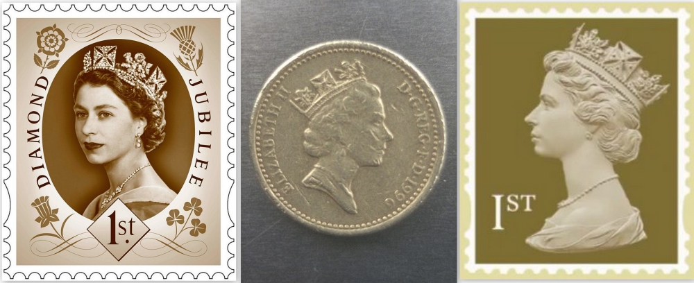Королеву в диадеме можно видеть на почтовых марках и монетах. |