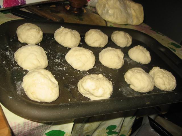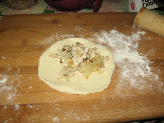 Потом начинаем готовить пирожки. Тесто разделить на 12 частей - получится 12 достаточно больших пирожков.