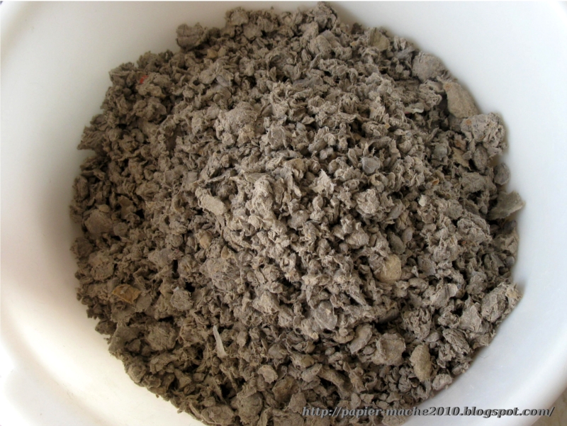 Чтобы получилась такая масса, ячейки нужно разорвать на мелкие части и замочить в горячей воде. Когда масса разбухла и хорошо пропиталась водой, ее нужно измельчить с помощью блендера. Если вы готовите большое количество массы, скажем для большого настенного панно, то удобнее всего в этом случае пользоваться электродрелью с насадкой "миксер"