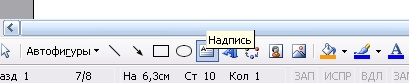 Теперь подпишем наши рисунки. Для этого выделите рамку с рисунками (кликните на свободном от рисунков месте, чтобы появилась рамочка) и выберите на панели – Рисование – иконку – Надпись -.