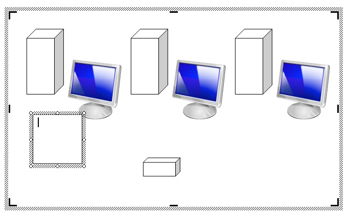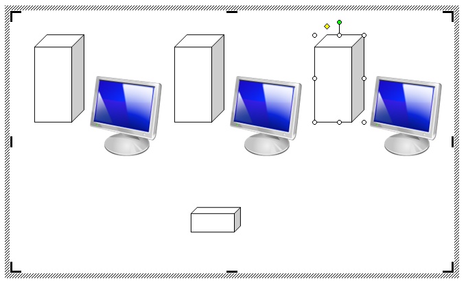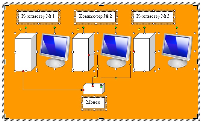 Чтобы наши отдельные рисунки и иконки не смещались в разные стороны, необходимо каждый элемент (и соединительные линии тоже) выделить (щелкайте по каждому элементу, удерживая клавишу «Ctrl», пока не выделите все элементы). Тут тоже придется попотеть. Даже у меня не всегда с первого раза получается.