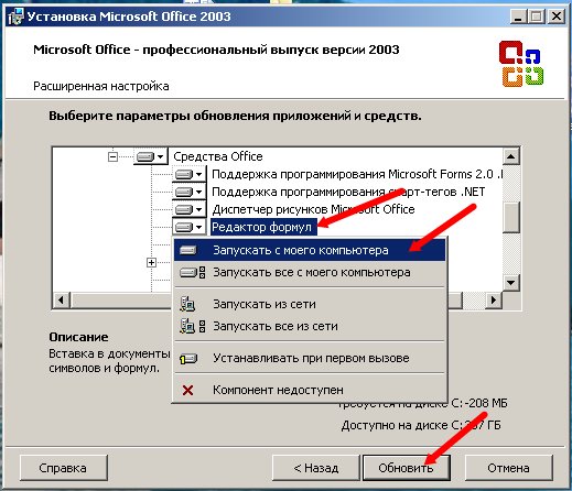 В списке устанавливаемых компонентов щелкните индикатор развертывания (+) рядом с элементом Средства Office.