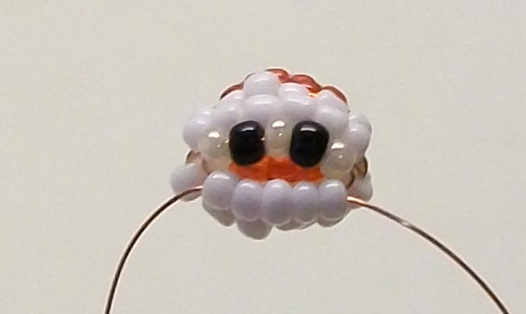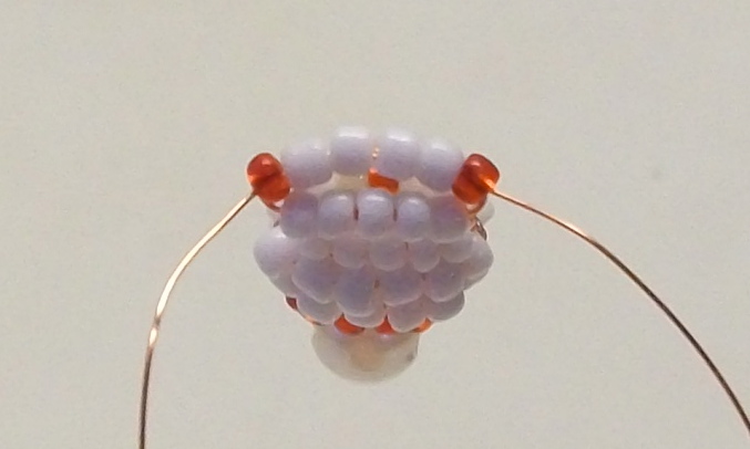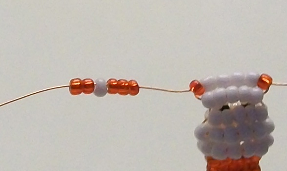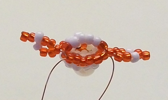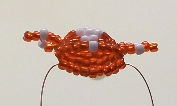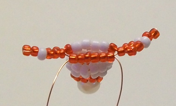 Верхний и нижний ярусы - по 6 белых бисеринок.