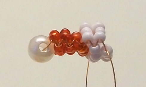 Набираем на этот же конец проволоки 1 белую и 2 красные бисеринки